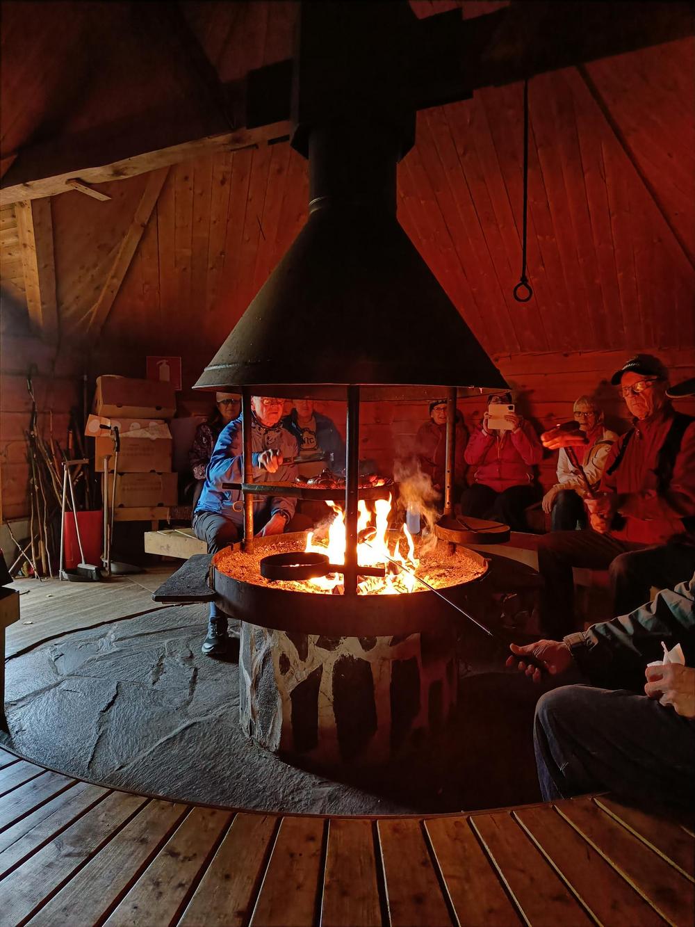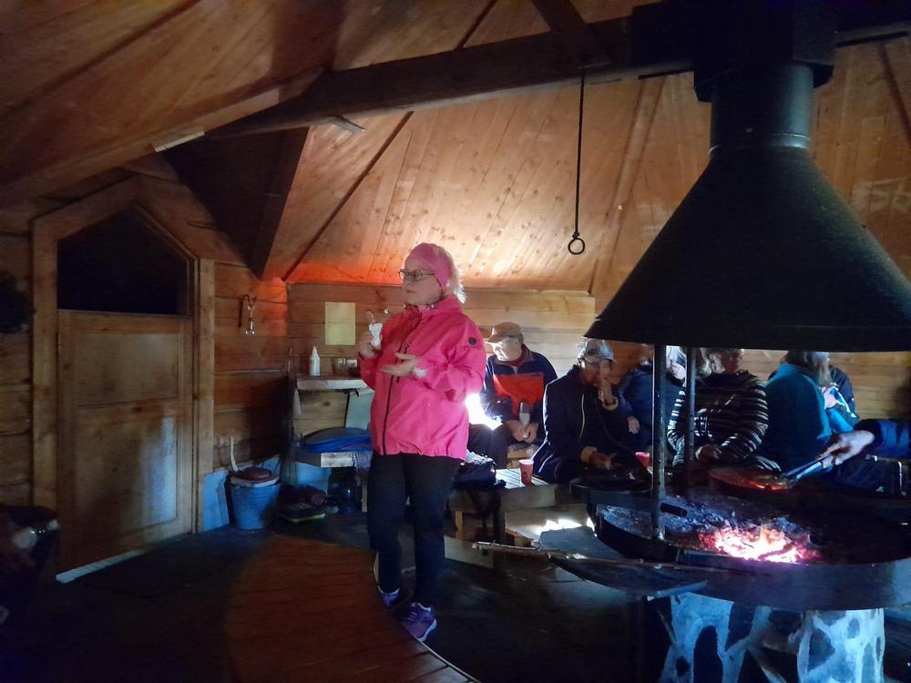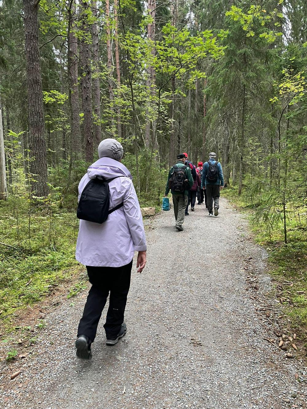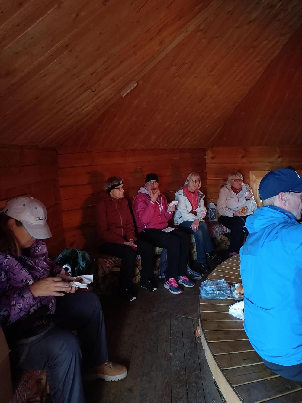 Vaellustetkellä Kuhasalossa. Meitä oli lähes 30. Aurinko paistoi, makkarat ja piirakat maistuivat.