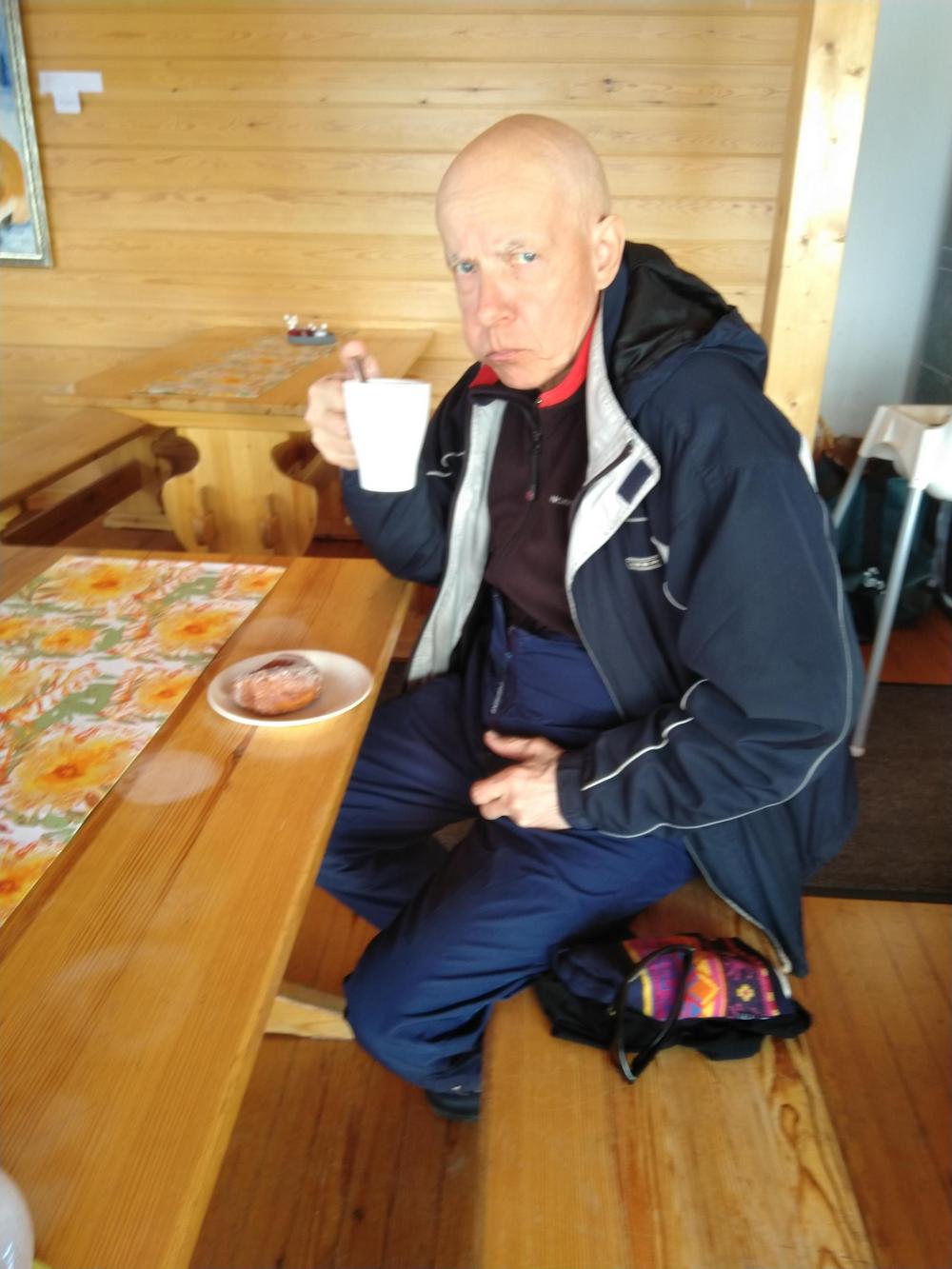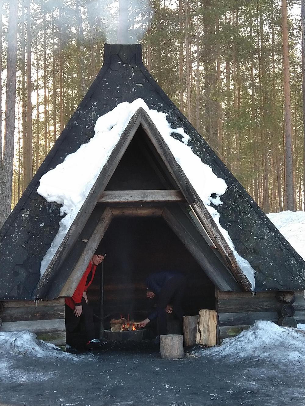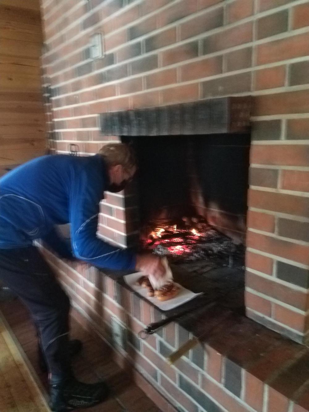 Hiihtopäivä Lykylammella. Suksiluisti hyvin. Kosti paistoi meille takassa makkarat, keitettiin kahvit, kuumat mehut juotiin ja munkit syötiin.